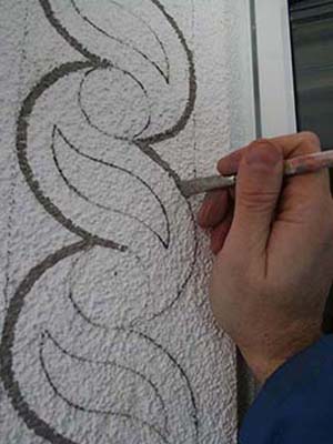 Granierende Maltechnik als Nachahmung der Sgrafitto-Technik