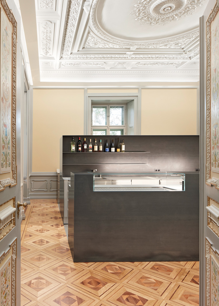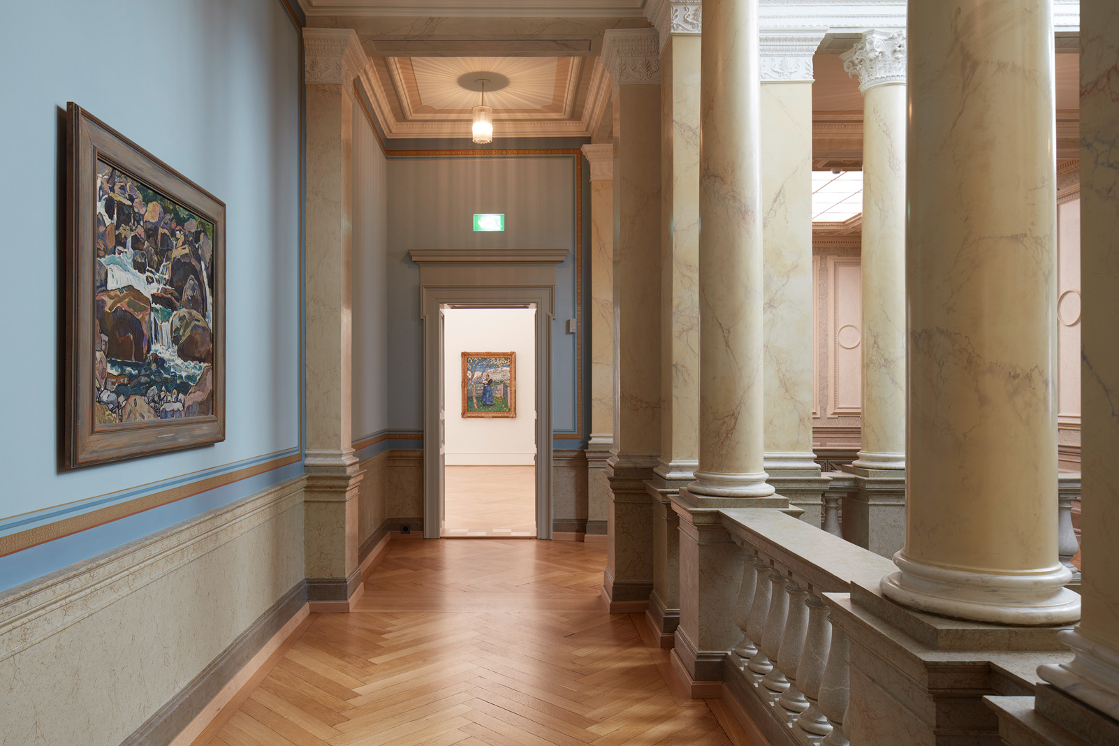 Das grosszügige Raumprogramm drückt bereits den herrschaftlichen Anspruch des Hauses aus. Dieser zeigt sich auch im Reichtum der Ausstattung mit Fliesen- u. variierenden Parkettböden, Wandtäfern, Tapeten, Stuckaturen sowie ornamentalen und figürlichen Malereien.